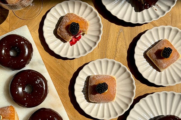 1 dough done 3 different ways. We’ve got Cardamom, Custard & Blackberry filled doughnuts, Orange & Cinnamon w a Condensed Milk & Salted Chocolate glaze…