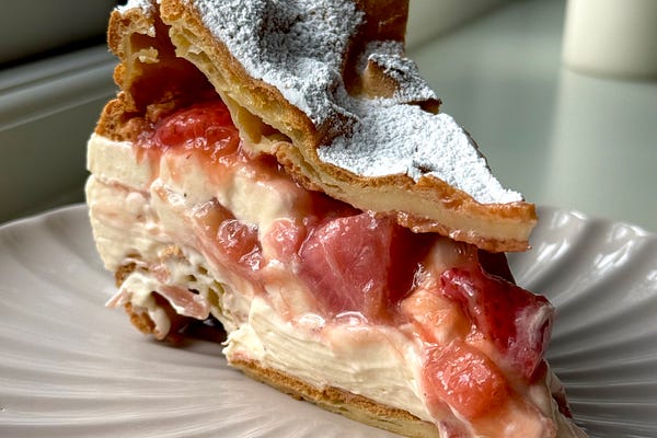 A medley of treats this week including an Apricot Cake, Roasted Strawberry Karpatka, and a Tonka, Mango and Coconut Princess Slab Cake.