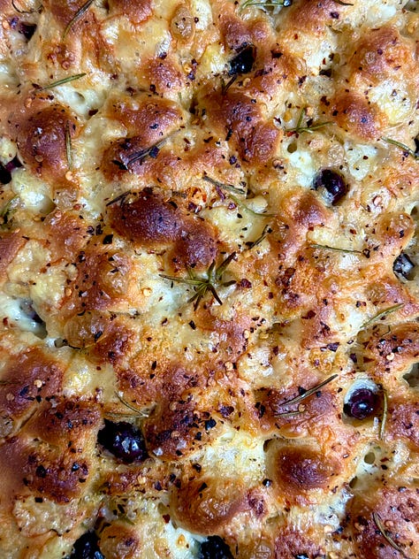 Moving onto our main bakes of the day. A big reason for my existence. Delicious, buttery, bread based carbs. Starting off with our savoury serving of my Chili, Cheese & Olive Focaccia.