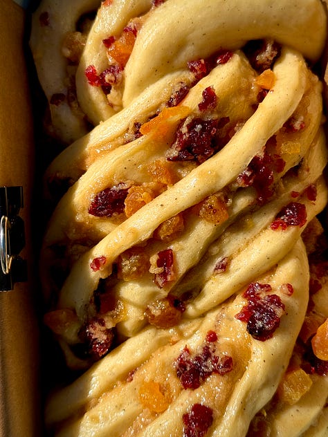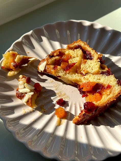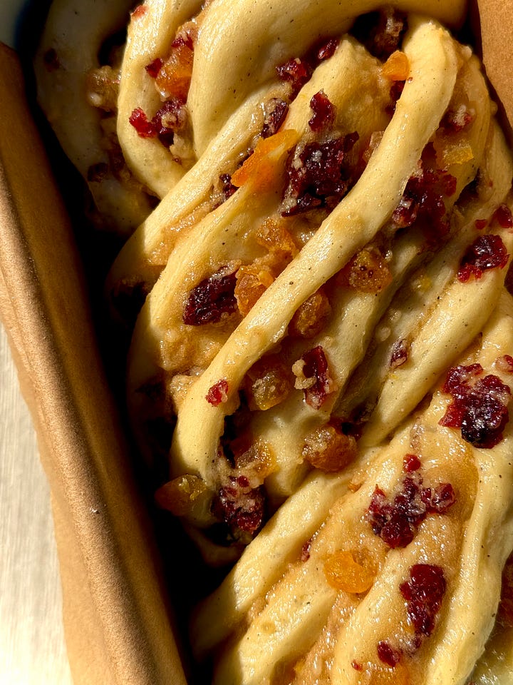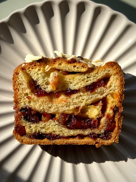 Cranberry, Apricot and Almond Babka: Rounding off the newsy with a little bit of sweet. Our second serving of bread, but this time a riff on a recipe I did whilst I was in the Bake Off tent. Layers of enriched bread, intertwined with a brown sugar and marzipan butter, dried cranberries and apricots. Finished with an apricot water icing glaze and a scattering of flaked almonds, a slice of this served up alongside your morning coffee is the perfect way to start your day.