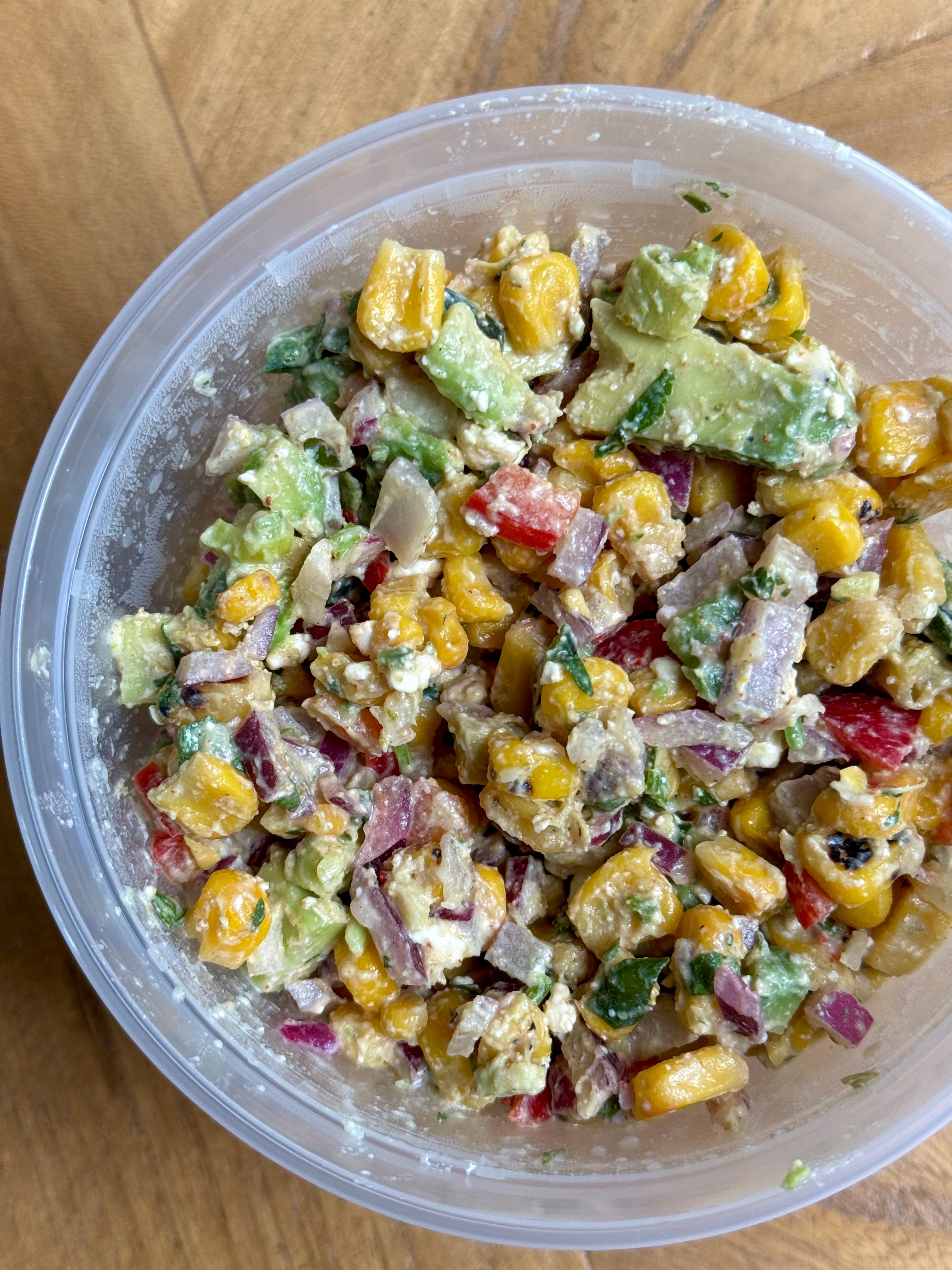 Moving onto a great side salad which works well with any protein (fish included), to dunk tortilla chips into, alongside tacos, in burger bowls or as my favourite option...the grilled cheese addition you didn’t know you needed. My Charred Sweetcorn Salad is so versatile and quick to make – a great lunch prep addition if you are short on time but still looking for punchy, satiating flavour.