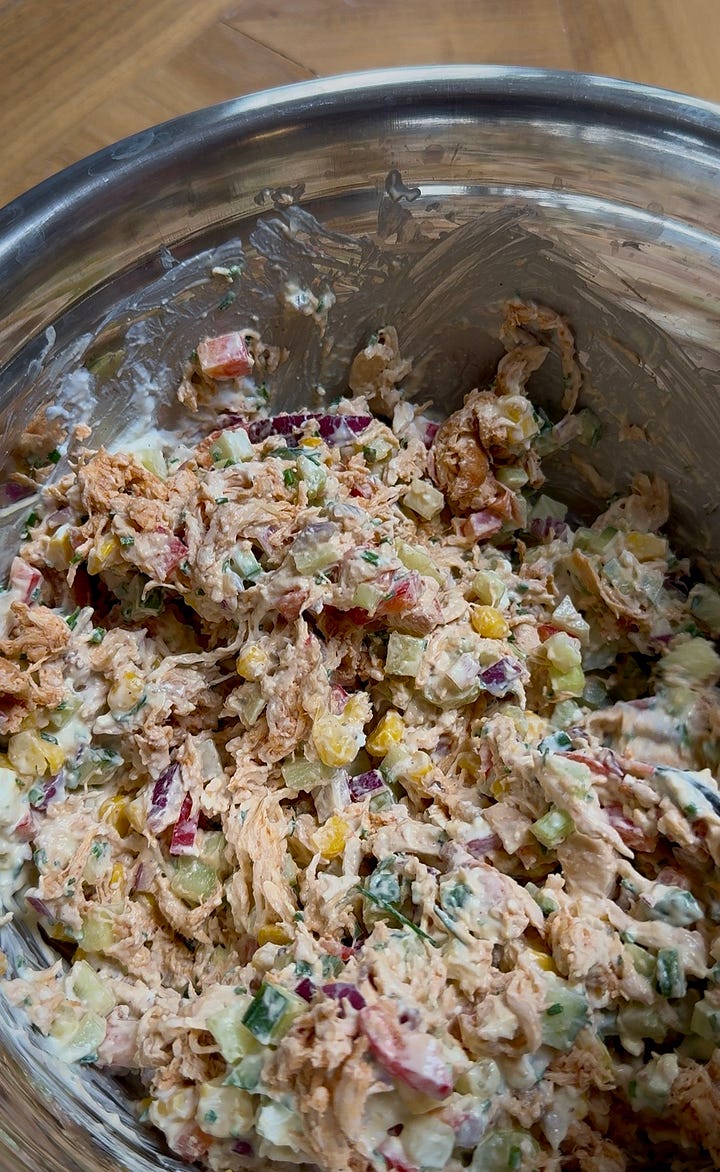 Here we are subbing half of the mayonnaise for blended cottage cheese for added protein and a healthier substitute and we are also cheating using store bought chipotle paste instead of making it from scratch because why give yourself another job to do?? Work smarter, not harder folks.