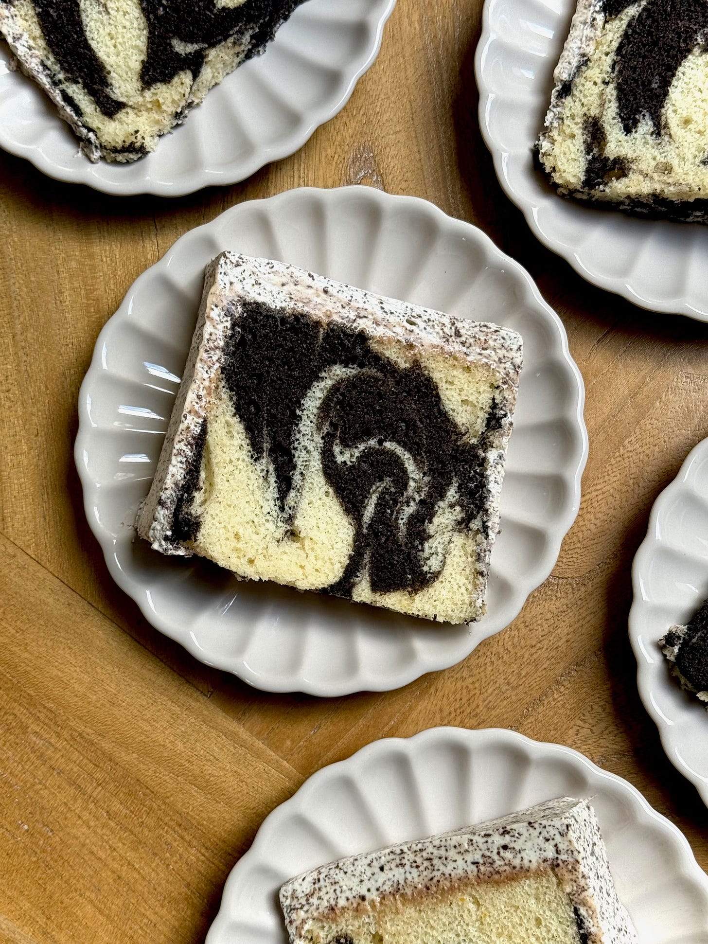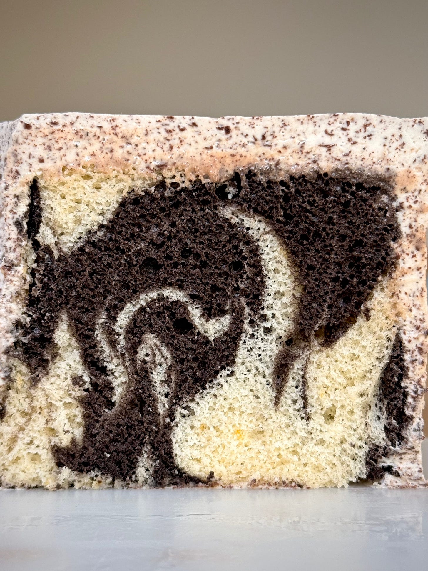 Finally, we move onto some slightly filthier things. First up we have something pretty tame – even for me. This week I have been craving gentle things – things that are helping me get back to me and things that aren’t overwhelming. The next is that, all whilst being heavenly delicious and entirely memorable. It’s pillowy soft, it’s incredibly light and has this touch of decadence which feels classy. This is my Vanilla and Chocolate Marble Chiffon Cake with a speckled chocolate vanilla whipped mascarpone. So sure, vanilla doesn’t sound overtly sexy and indulgent and the combo of it with chocolate is a tale as old as time but the beauty of this lies within the sponge.