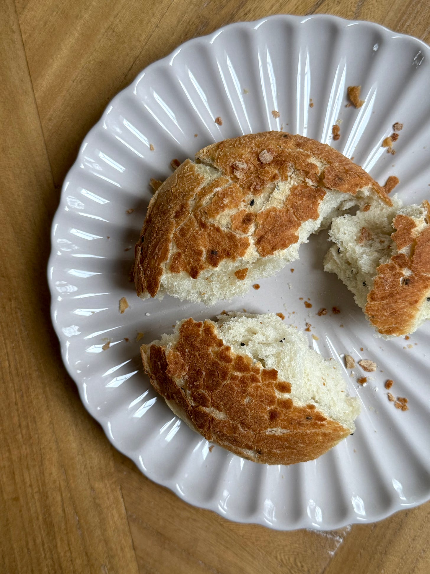 Place a tray of boiling water at the base of your oven before popping the tray into the oven. Bake for 20 to 24 minutes, until the rolls are beautifully golden brown and the bases sound hollow when tapped. Leave to sit on the tray for 30 minutes before transferring to a cooling rack.