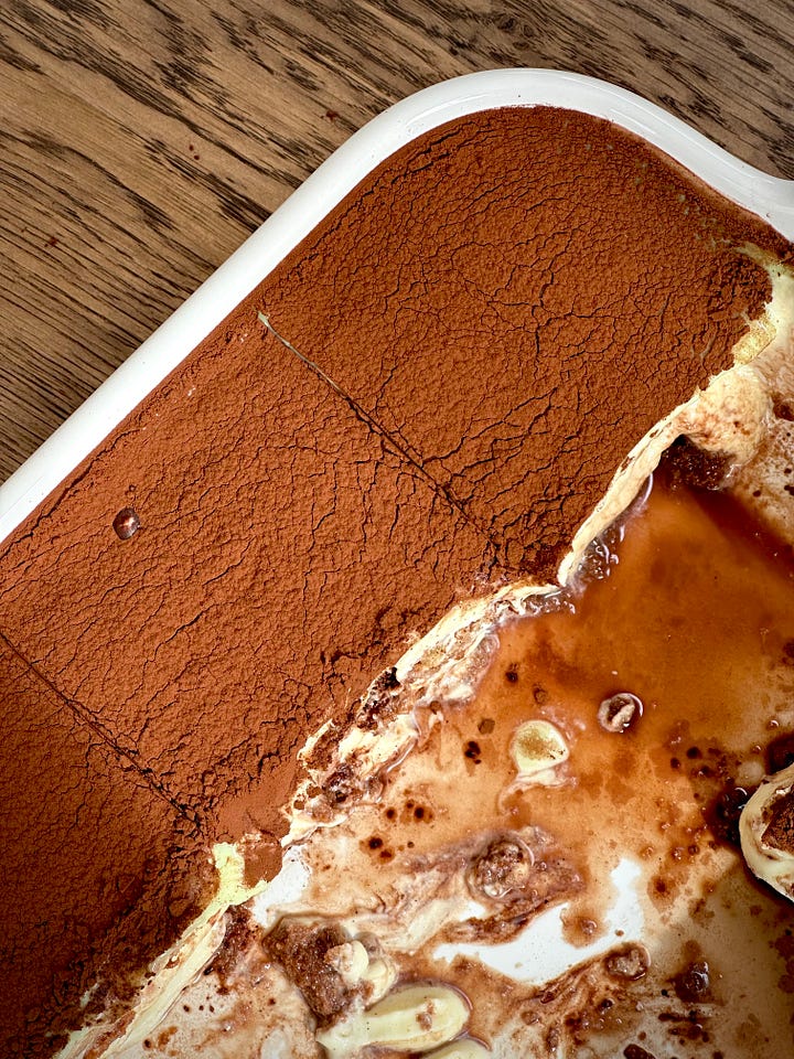 I can’t take any of the credit for this brainwave though because I have someone on Instagram to thank for it for suggesting I bin off the traditional sort and make a tiramisu version instead – which upon my first reading puzzled me. Then upon my re-reading, I realised this person was a genius because yes, tiramisu at any time of year is a wonderfully easy, crowd pleasing pud to whip up but at this time of year?? When everything is about speed, efficiency, multitasking, multi-feeding, multiple courses and of course…how it all looks? Genius.