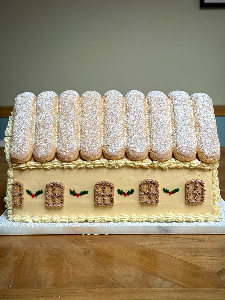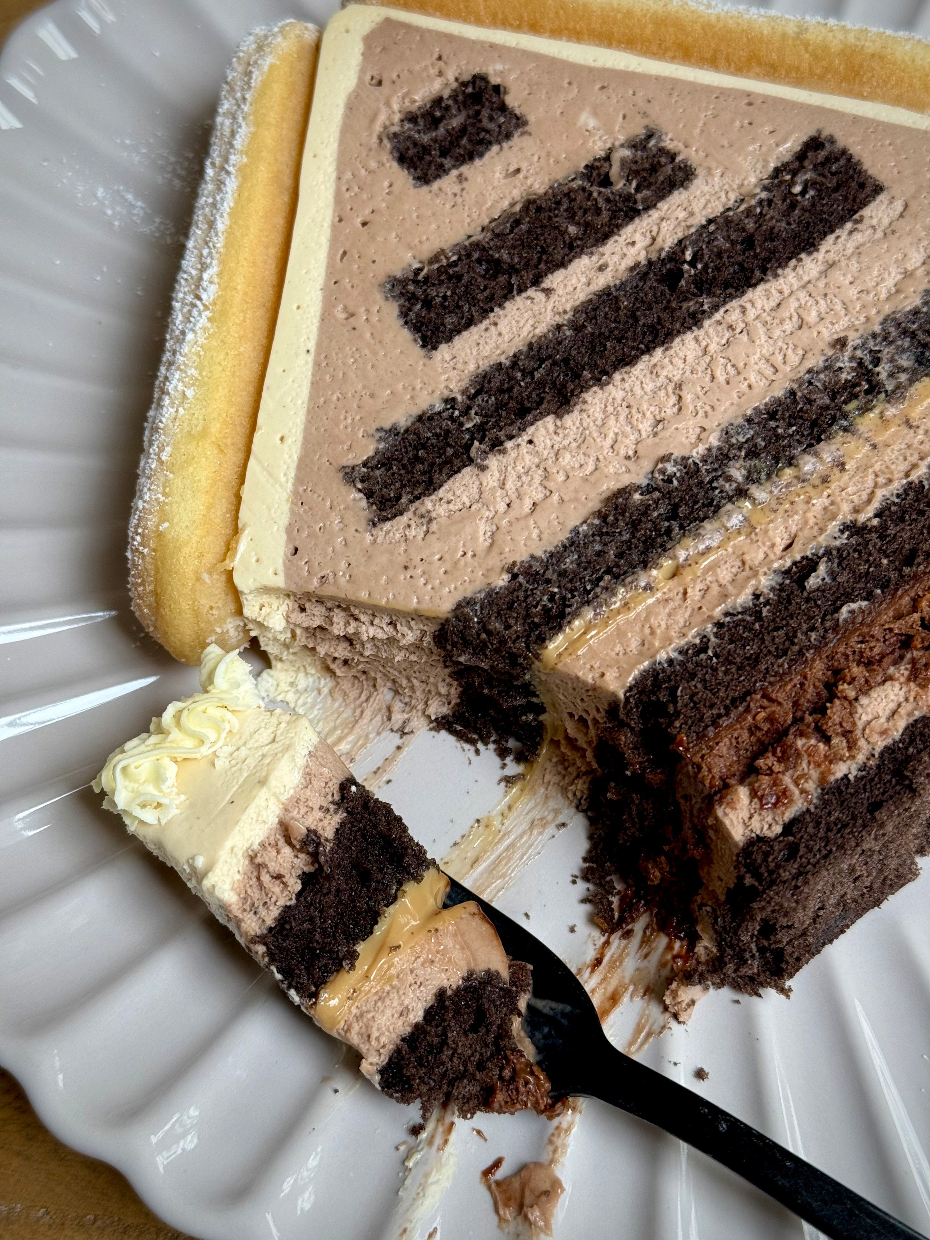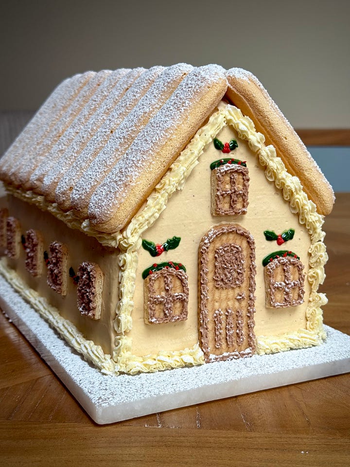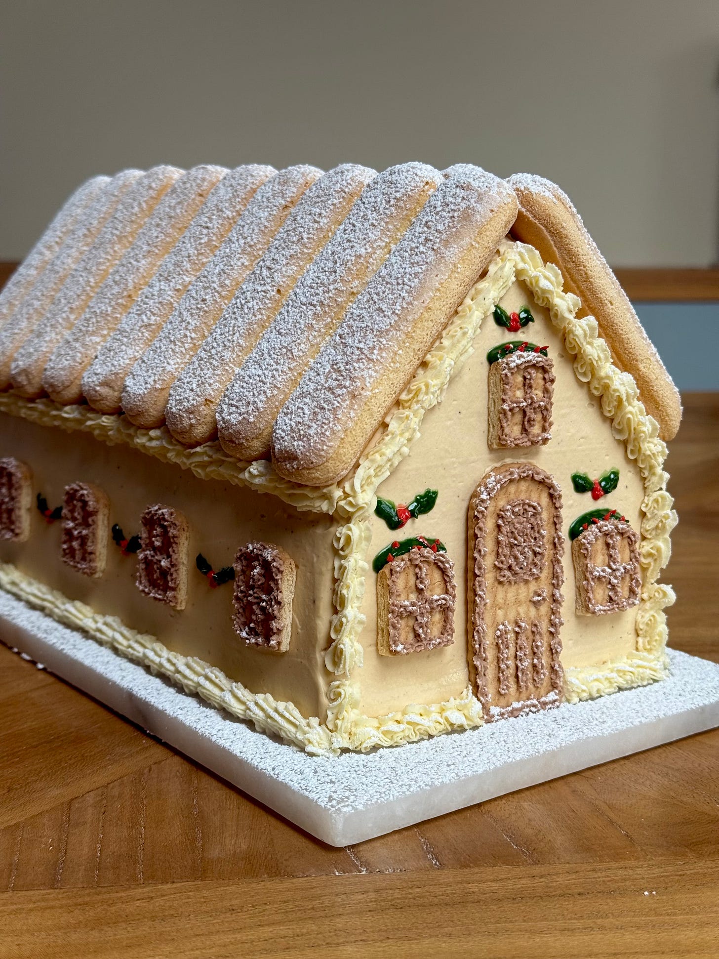 Finishing up the plethora of desserts this week, we have my Chocolate & Dulce de Leche House. Yup, HOUSE. When I mentioned making a gingerbread house for this year, someone slid into my dm’s and said I should sack that off in favour for a tiramisu house. And that folks, is exactly what I did. Three times. And each time it flopped so here we are with a cake version instead. 6 layers of chocolate genoise soaked in malt syrup, a layer of chocolate feuilletine, a layer of dulce de leche all smothered, wrapped and covered with a chocolate whipped mascarpone. Deliciously cute and the ultimate showstopper cake for Christmas Day.