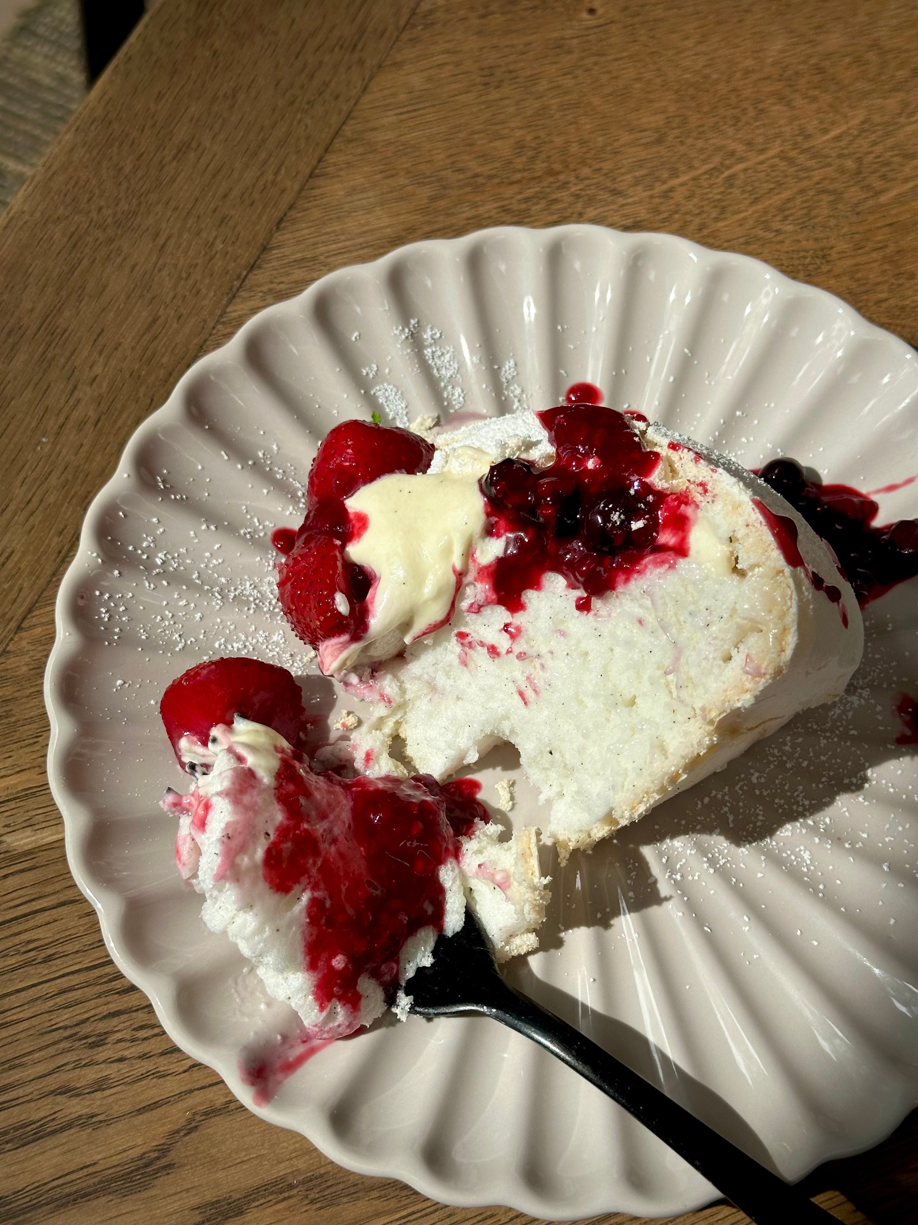 My version sees a mountain of meringue piled up high, topped with a vanilla crème legere and finished with a generous drizzling of mixed berry compote. It’s the perfect mix of crunchy, crisp, smushy, smooth, soft, sweet and tart. IF, and this is a huge if, your pavlova collapses once it is out of the oven (a – I guarantee you didn’t follow the above tips or b – removed it too early) then never fear. Turn the crumpled meringue into Eton Mess and no one will know anything different. Work smarter, not harder people!