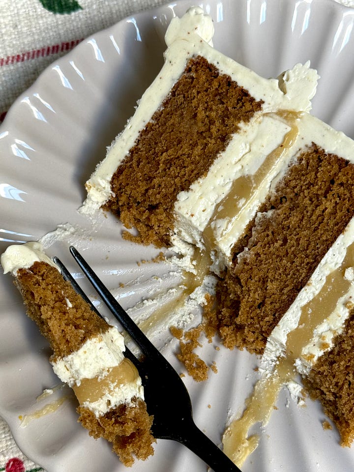 In what has to be one of my favourite cakes of the year, we have 3 sticky, zingy, warming, sumptuously soft, moreishly moist, deeply flavoured ginger sponges, slathered in a ginger syrup, sandwiched between layers of orange spiked butterscotch and smothered in a brown butter swiss meringue buttercream.